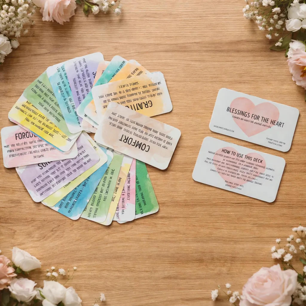 Blessings for the Heart is a mini card deck created as a quiet companion for tender moments — when words are hard to find, emotions feel close to the surface, or you simply need a reminder that you’re not alone.